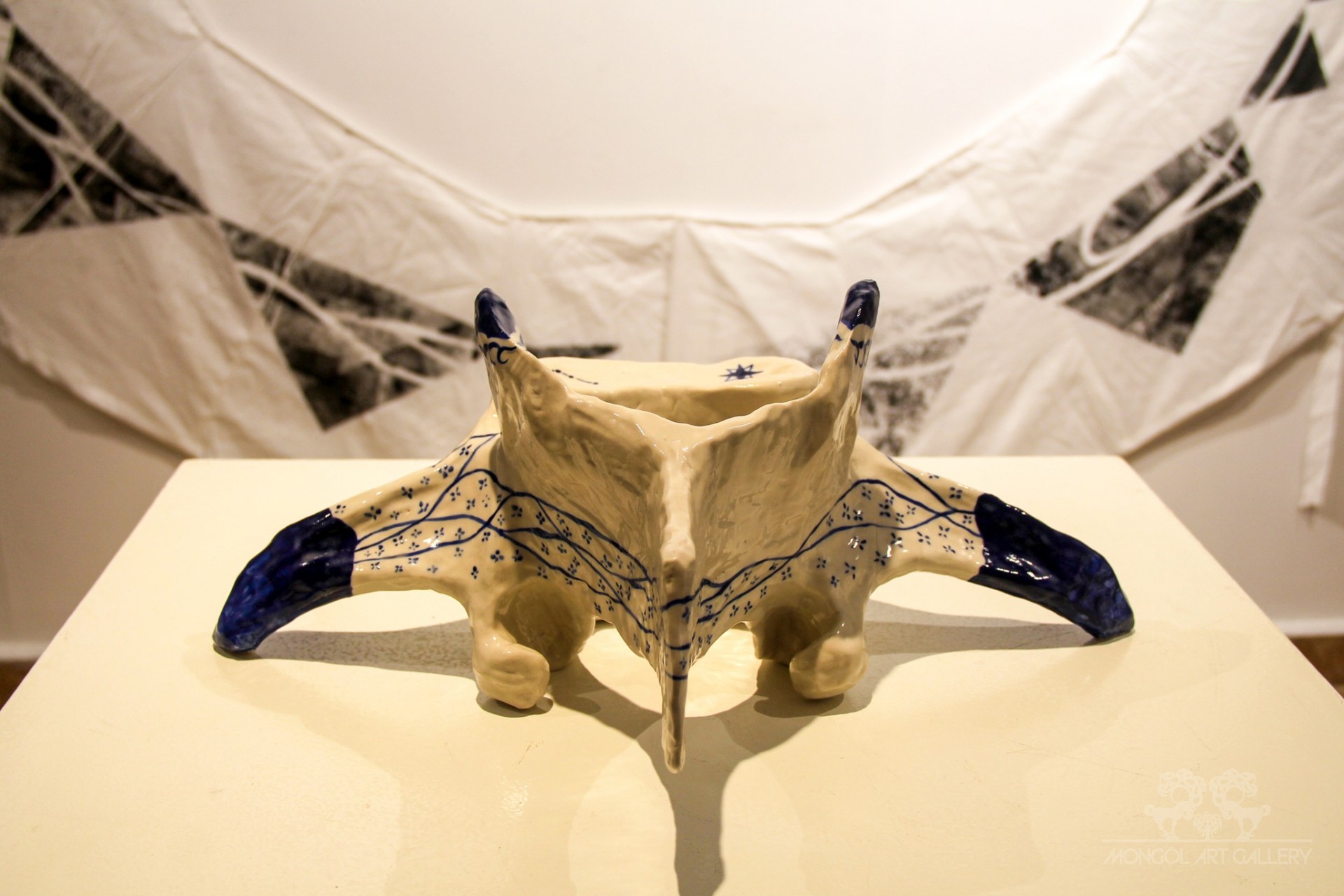 A profound source of inspiration in her practice is the Mongolian worldview, particularly the reverence for the Eternal Blue Sky and the nomadic way of life rooted in harmony with nature. Through this lens, her works explore the bond between humans and the natural world, the passage of time and existence, and the interplay between inner and outer realities.